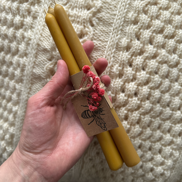 Ceramic Candle Holder Gift Set and Handmade Beeswax Candles