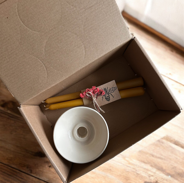 Ceramic Candle Holder Gift Set and Handmade Beeswax Candles