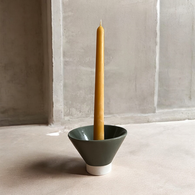 Ceramic candle holder gift set is a delicate and thoughtfully curated piece for slow living and cozy interiors. This set includes one ceramic candle holder in a muted olive green colour and three natural beeswax candles, carefully crafted by hand.