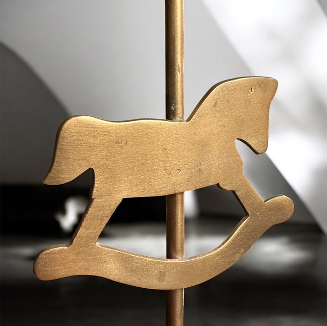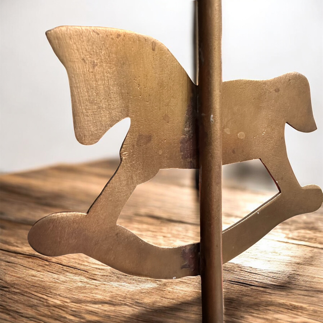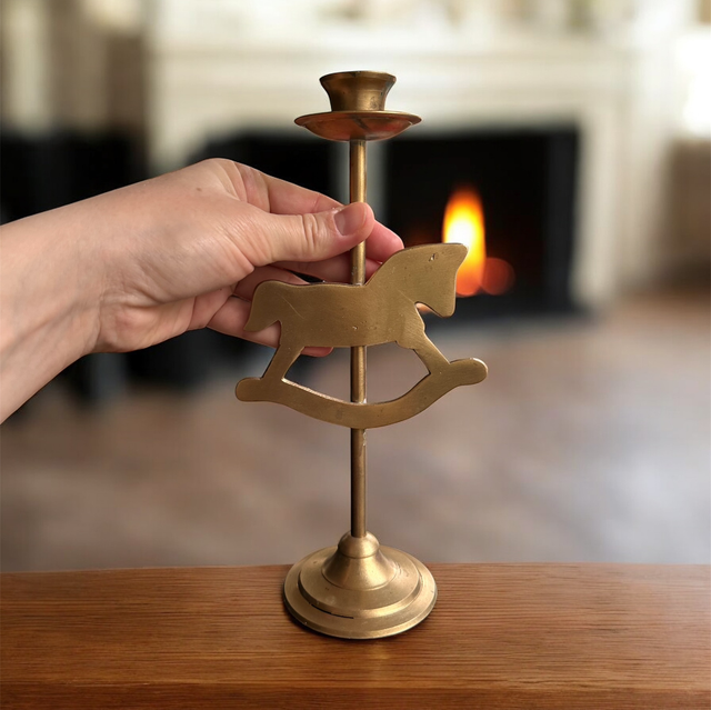 This vintage brass candle holder features a beautifully crafted horse figurine, making it a unique and elegant piece for any home interior. The warm golden tone of the brass adds a timeless charm, while the sculpted horse brings a sense of motion and character to the design.